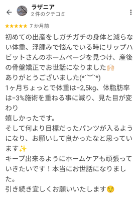 リップハビットでは産後骨盤矯正コースを【最短の約1カ月】で終了きます。